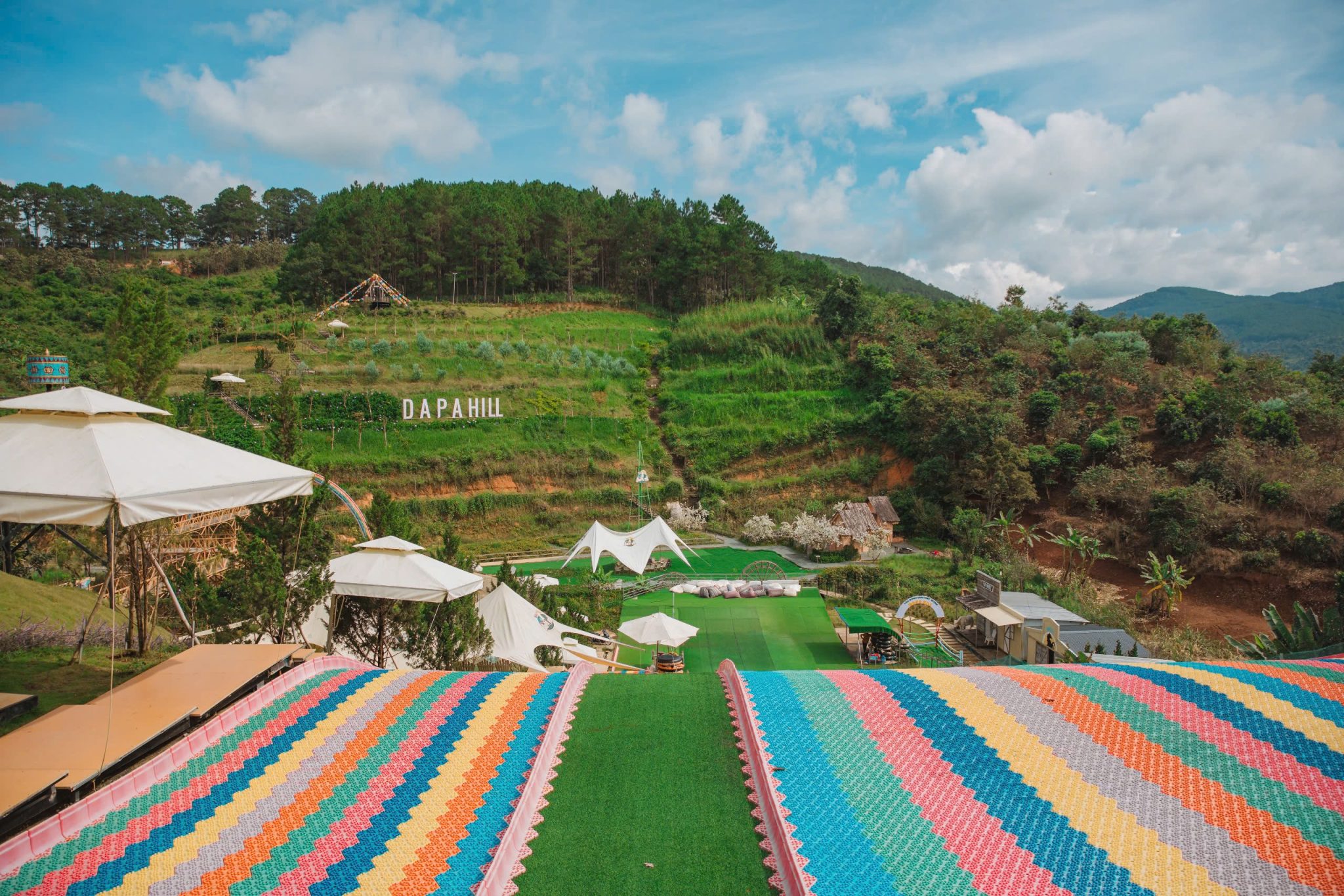 Một địa điểm du lịch mới tinh tại Thành Phố Ngàn Hoa với phong cách xây dựng vô cùng độc đáo, lấy chủ đề là các kiến trúc của văn hóa Tây Bắc kết hợp cùng hoạt động vui chơi trải nghiệm máng trượt bảy sắc cầu vòng bằng phao hơi lần đầu tiên có mặt tại Đà Lạt.